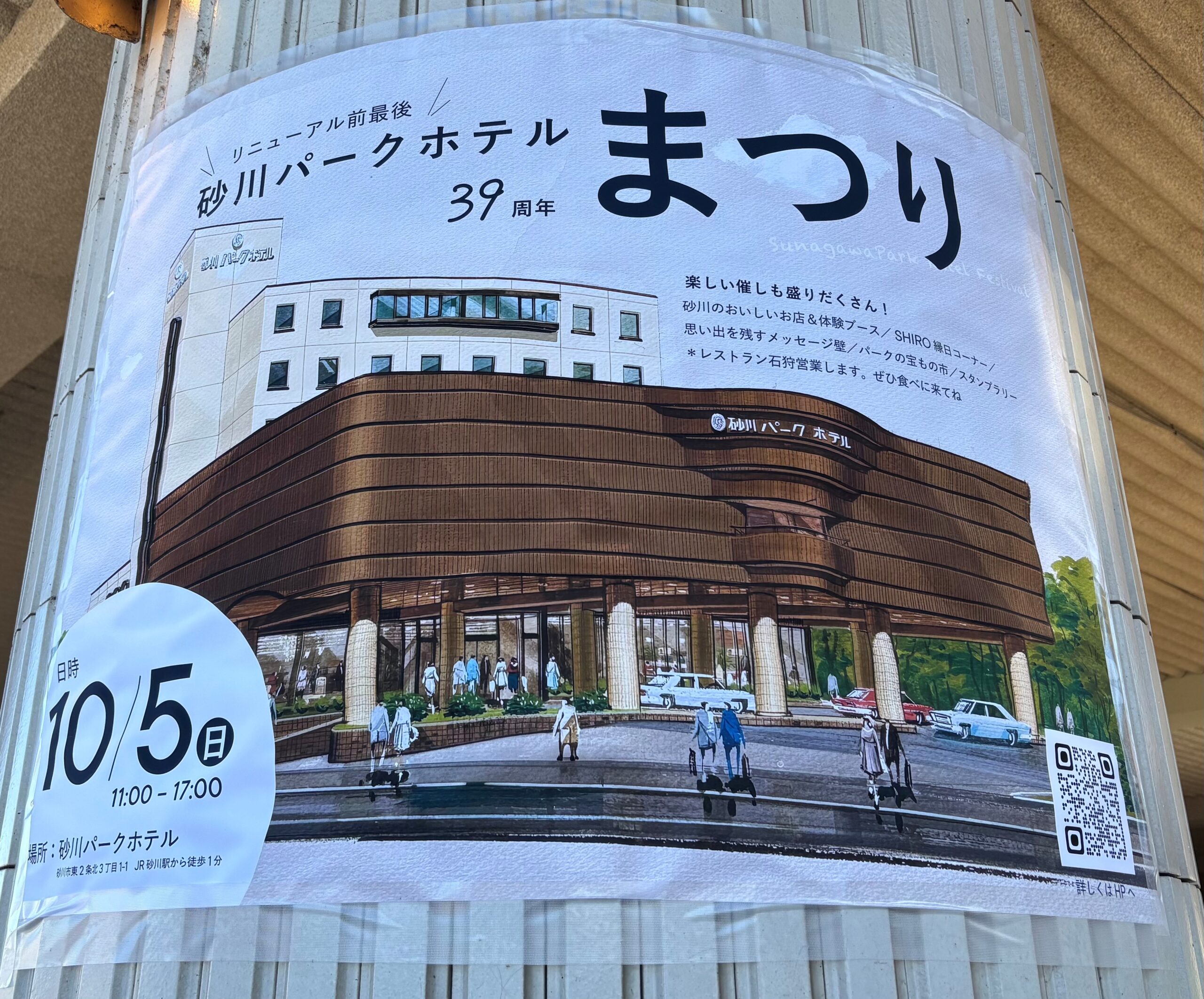 イベント出店のお知らせです。 2025年10月5日日曜日に、リニューアル前後・砂川パークホテル39周年まつりが開催されます。 砂川のおいしいお店&体験ブース・SHIROの縁日コーナー等、楽しいこと盛りだくさんのイベントに […]